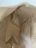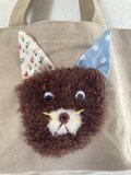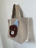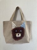 ベージュ色のウォッシュキャンバストートバッグに、ふわふわの猫の作品を縫い付けました。