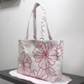 布地を透明ビニールで挟み、ミシンで縫い上げたバッグ。