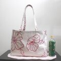 A bag in which the fabric is sandwiched by transparent vinyl (PVC) and sewed with a sewing machine.