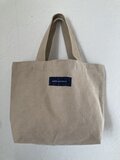 ベージュ色のウォッシュキャンバストートバッグに、ふわふわの猫の作品を縫い付けました。