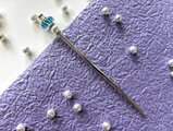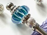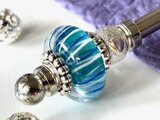 水色と銀箔のとんぼ玉でかんざしを作りました。