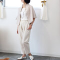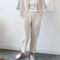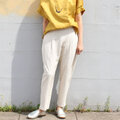 ★柔らかいヘンプコットン素材とすっきりとした美シルエットが特徴のタックパンツ。