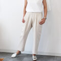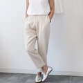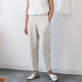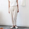 形のきれいなヘンプコットンのテーパードタックパンツ【生成り】