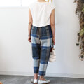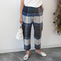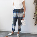 形のきれいな手織りコットンのテーパードタックパンツ【ワイドチェック】