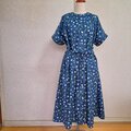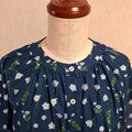 綿85%麻15%のコットンリネンのネモフィラの生地で、バンドカラーのワンピースを作りました。