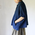 藍染め・リネンコットンのゆったりシャツ|群青色