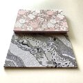 素材は「桐生金襴織物」(化繊)です。比較的丈夫で色褪せし難い為、美しい絵柄を末永くお楽しみ頂けます。織物(繊維)は摩擦や引っかけに繊細な素材です。御朱印帳袋等を使用して御朱印帳を保護して頂き、本作品をより美しい状態で保って頂く事をおすすめ致します。