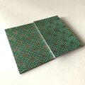 色彩については、常磐緑(ときわみどり)という日本の伝統的な緑系の色調が特徴です。これは常緑樹に由来し、「不変」や「永続」の象徴ともなり、御朱印帳という巡礼の記録帳にふさわしい象徴性を備えています。そこに配された金糸の輝きは、荘厳さと華やかさを併せ持ち、私たちの信心に高貴な精神性を与えます。