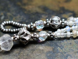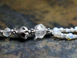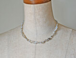 2種類のオーロラチェコビーズとグーズベリー、フランスのヴィンテージビーズ、カレンシルバーなどを繋いだ2連のネックレスです。
