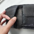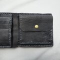 肌触りのいい鹿革を使用し、手縫いによるハンドメイドで自然の風合いを活かし制作した二つ折り財布です。