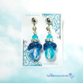 上質な研磨による輝きとカットが美しい、ルナフラッシュを透明感がありながら、深みのあるカプリブルーのドロップで飾ったイヤリングです。