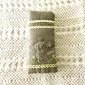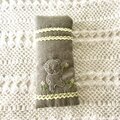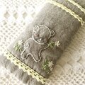 くまとお花のメガネケース(チャコールグレーにクリーム色)