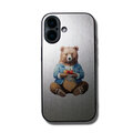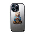 【まるで金属のようなiPhoneケース・カメラフルカバーver】(シルバー)クマ×リンゴ 耐衝撃 12/13/14/15/16~