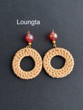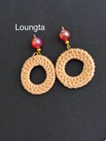送料無料 ラタンピアス ラタン レッドアクリルビーズ 軽いピアス 夏ピアス 大ぶりピアス