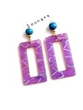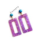 送料無料 ウッドビーズピアス 大ぶりピアス ブルー ターコイズカラー パープルピンク 樹脂ピアス