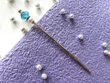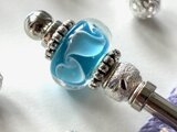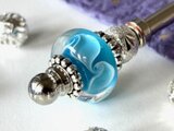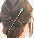 水色のリーフ模様のとんぼ玉でかんざしを作りました。