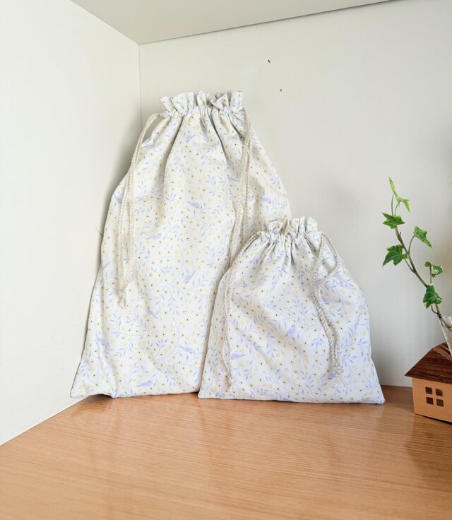 まあるいシルエットの巾着袋2つセットです。
