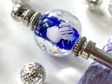 青色のクラゲのとんぼ玉でかんざしを作りました。