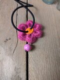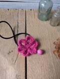 ふわふわモヘア毛糸のピンクカラーのお花とビーズの組み合わせです。