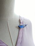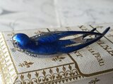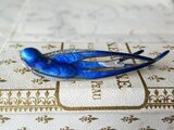 1920年代フランスアンティーク、約65㎜ほどの華やかサイズの青いツバメのブローチです。