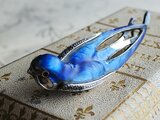 フランスアンティーク Blueエナメル/ペースト/ツバメのブローチ(65㎜)シルバー製