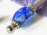 流水の様な青マーブルのとんぼ玉でかんざしを作りました。