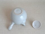 この作品は、信楽の土を使いろくろで作っています。美しい白色を出すために、京都清水で学んだ薄作りの技法を用い丁寧に削り釉薬をかけて仕上げています。内側にも釉薬をかけ、茶こし穴は細かい穴を開けています。軽くて注ぎやすく湯切れも抜群です。蓋もすり合わせが良くぴったりです。