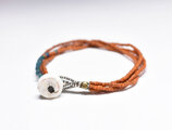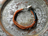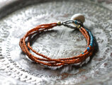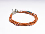 アンティークオレンジ色シードビーズとエメラルドブルーのビーズを4連にしたブレスです。