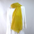 シルクと一緒に、細い金ラメも編み込まれていますので、光に当たると、上品にきらめいて、エンジュの暖かな黄色をより一層引き立ててくれます。