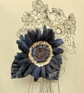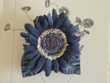 ビロードをブラックに染めて作った花びらいっぱいの大きなガーベラのコサージュです。