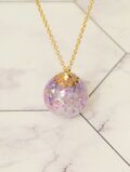 ゴールドのチェーンに控えめな紫のパーツを散りばめたレジンのネックレスです。