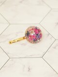 ゴールドのヘアピンに、小さなお花を封じ込めたレジンベースのアクセサリーです!