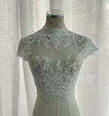 ボレロのみ ハイネック 短袖 可憐な花刺繍のトップス くるみボタン フランス風 結婚式