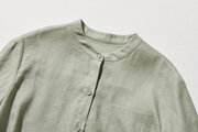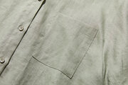 夏に嬉しい通気性◎ 上質リネンの半袖シャツ 羽織りコーデにも リネン100% 薄緑色 250513-1