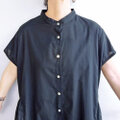スタンドカラーの首元と縦の切り替えでスッキリと見える