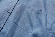 夏に嬉しい通気性◎ 上質リネンの半袖シャツ 羽織りコーデにも リネン100% 灰みのある青色 250513-4