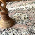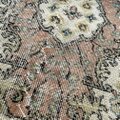 スモーキーピンクとミルクアイボリーが織りなす、柔らかで上品な色合い。こちらはトルコフローラル・メダリオン柄のヴィンテージラグです。