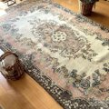 118×207 フローラルメダリオン スモーキーピンク トルコヴィンテージラグ