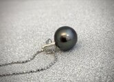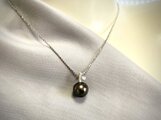 素材:黒蝶真珠11mm、あこやケシ、SV、40cmSVチェーン付き(ロジウムメッキ)