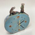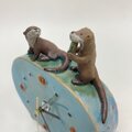時計の上部で、カワウソの兄弟が戯れています。