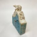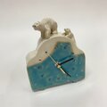 時計の上部の形を氷山に見立て、母親クマに追いつこうとする子熊の姿を乗せました。
