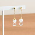 乳白色とクリアの小さな粒ガラスを溶かし合わせ、シンプルなチェーンを付けたピアス/イヤリングです。