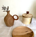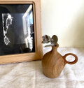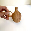 小さなツボのような形の本体に、チェリー材を削り出して作った
