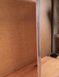 裏面の中心の空間は2mmか3mm程度になると思います。額装するとわからない程度だと思います.以上の状況をご理解のうえご検討くださいませ。