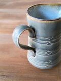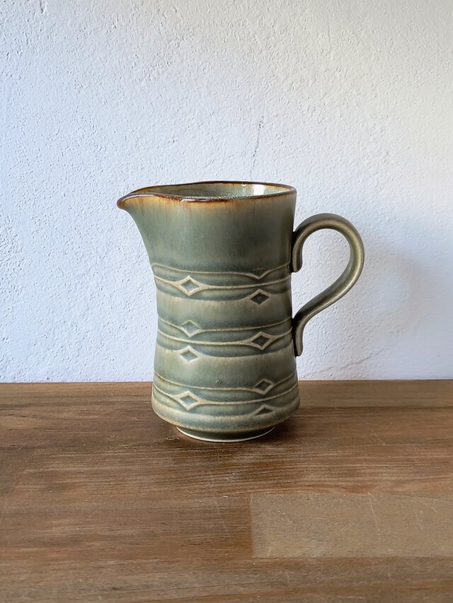 深いグリーンの釉薬の下から、丁寧に描かれた模様が浮かび上がり、ひとつひとつ異なる表情を見せてくれます。