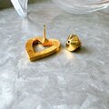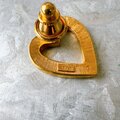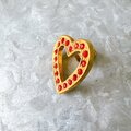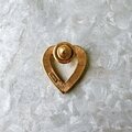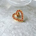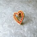 赤いラインストーンが華やかなゴールドトーンのオープンハートブローチピン。