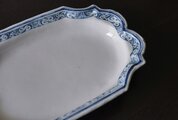 艶やかな白錫釉、青色で描く輪線とランソー柄に、