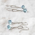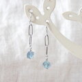 スリムなオーバル形状のチェーンに透明感があってみずみずしいブルー~ブルーグリーンのダイス形状のフローライトを一粒合わせたシンプルで爽やかな雰囲気のピアスです。
