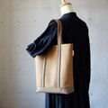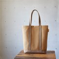 A4縦型トート<ミディアムベージュ×モカ> 倉敷帆布