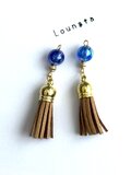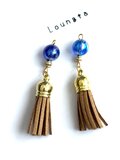 タッセルピアス フリンジピアス ブルー ブラウン 樹脂ピアス